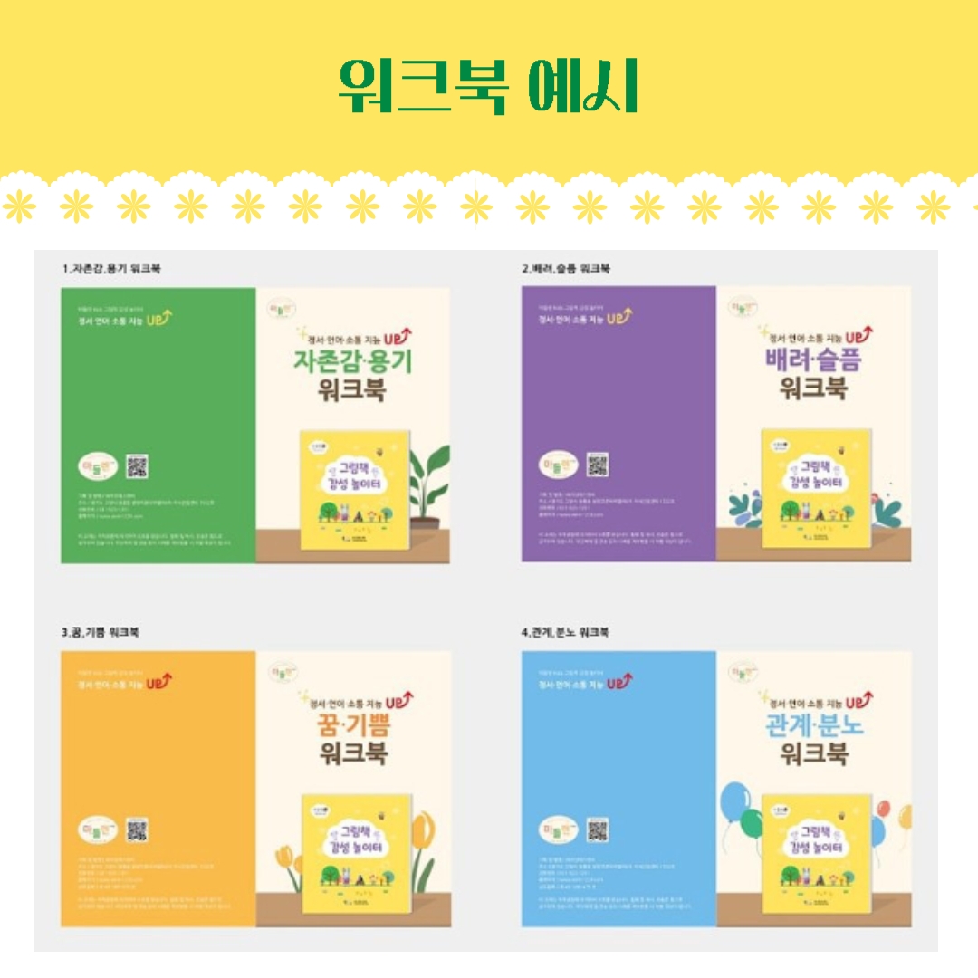 미래사회에서 필요한 역량을 키우고 인성과 감정이 조화롭게 어우러지는 건강한 감성을 지닌 어린이로 성장할 수 있도록 목표와 주제에 맞게 여러 활동을 그림책과 연계하여 엮었습니다.