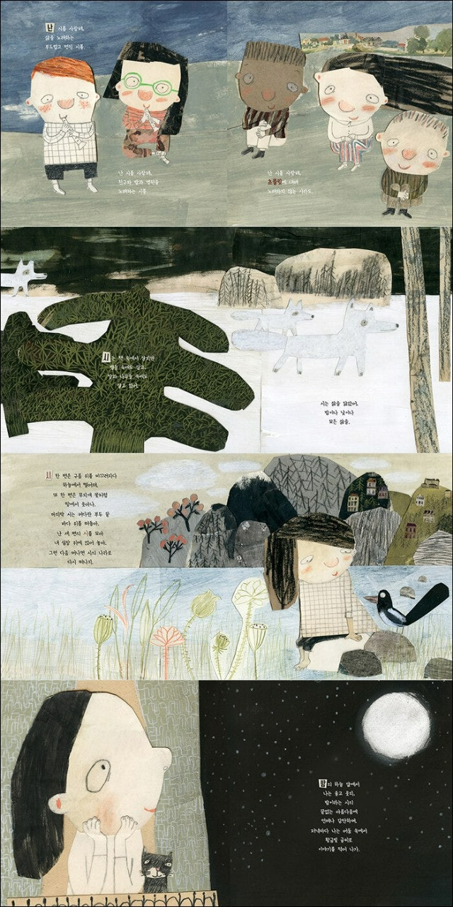 질 티보의 손에 잡힐 듯한 생생한 표현에 마농 고티에의 다채롭고 장난스러운 콜라주가 더해져 아이들에게 다소 어렵게 느껴질 수 있는 시의 본질에 보다 가깝고 쉽게 다가갈 수 있게 해준다. (알라딘 소개)