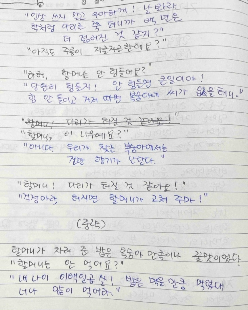 아무라도 자신의 마음을 알아줬으면 했던 아이의 절실함이 자개장 할머니에게 가닿으며, 결국 둘은 할머니와 손주 사이처럼 금세 가까워집니다. 태권도 학원에 다니고 싶다던 아이의 말에 자개장 할머니는 함께 복숭아씨(=보물)를 찾으러 가자며 아이를 자개 나라로 안내합니다.