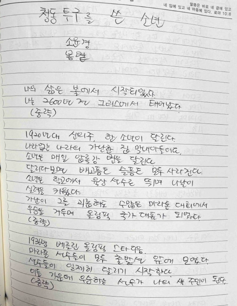 올림픽. 전 세계가 들썩이는 축제의 현장, 책 보다 텔레비전과 더 친해지는 시기다. 2024 파리 올림픽을 맞이하는 이때, 텔레비전 앞에서 책꽂이 앞으로 돌아오라며 우리를 향해 열심히 달음박질하는 책이 있다. 손기정 선수가 1936년 베를린 올림픽 마라톤 부상으로 받은 청동 투구를 다룬 소윤경 작가의 그림책, 《청동 투구를 쓴 소년》이다.